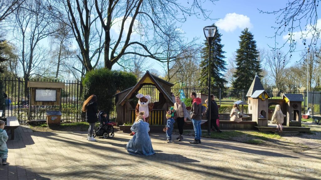 Jong en oud deed fanatiek mee en overal klonk gelach terwijl er druk werd gespeurd tussen struiken, speeltoestellen en hoekjes. De Paashaas was natuurlijk ook van de partij en nam alle tijd om samen met de kinderen op de foto te gaan. Trots lieten zij hun gevonden schatten zien, terwijl papa’s en mama’s deze mooie momenten vastlegden.